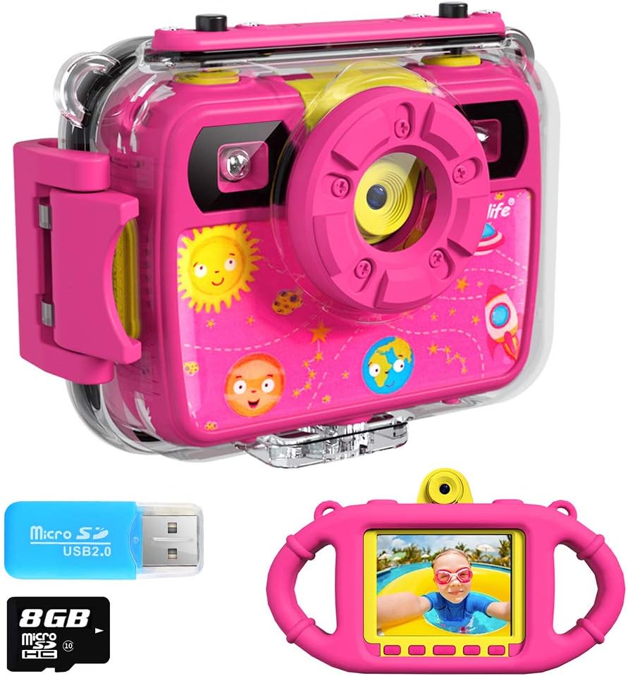 Our Life Kids Camera, Selfie Kids Waterproof Digital Cameras for Kids Updated 1080p 8MP 2.4-inch Large Screen with 8GB SD Card, Silicone Handle and Fill Light, 2019 (PINK3)![]() |