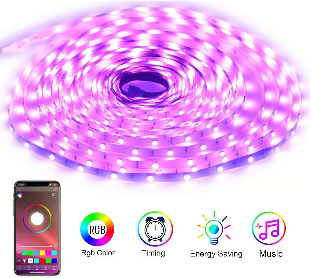 - Bluetooth wireless control: the color-changing light strip can be controlled remotely through the HappyLighting application. Only one click can adjust the color, brightness or many individualizations, such as music sync and timers on your smartphone